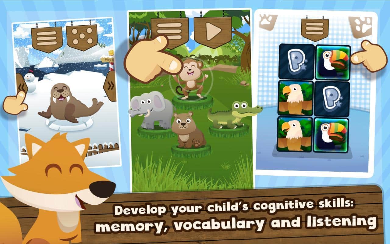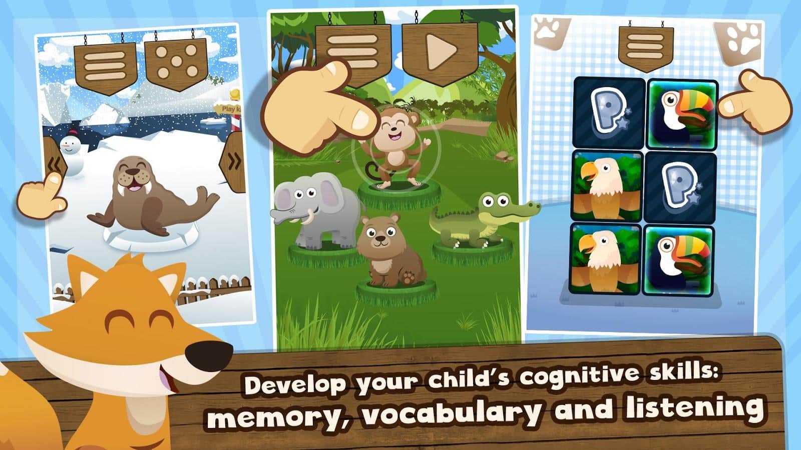 Hayvan Sesleri – okul öncesi yaş grubundaki çocuklar için eğitici bir oyundur, burada çeşitli hayvanları öğrenecekler. Bu, bir yaş ve üzeri çocuklar için oldukça eğlenceli ve keyifli bir oyundur; çocuk, hayvanların seslerini dinleyip hatırlayacaktır. Bu oyunu en küçük çocuklar bile bağımsız olarak oynayabilir; ekranda hayvan gösterilir ve çocuk, onun çıkardığı sesleri dinlerken, hayvanın adı ve özellikleri de duyulmaktadır. Bu oyun, çocuğunuzun sıkılmasına izin vermeyecek, çünkü içinde öğrenilecek 80'den fazla hayvan bulunmaktadır. Bu oyun, daha büyük yaş grubundaki çocuklar için de uygundur; burada dil değiştirebilir ve hayvanların adlarını başka bir dilde öğrenebilirler.