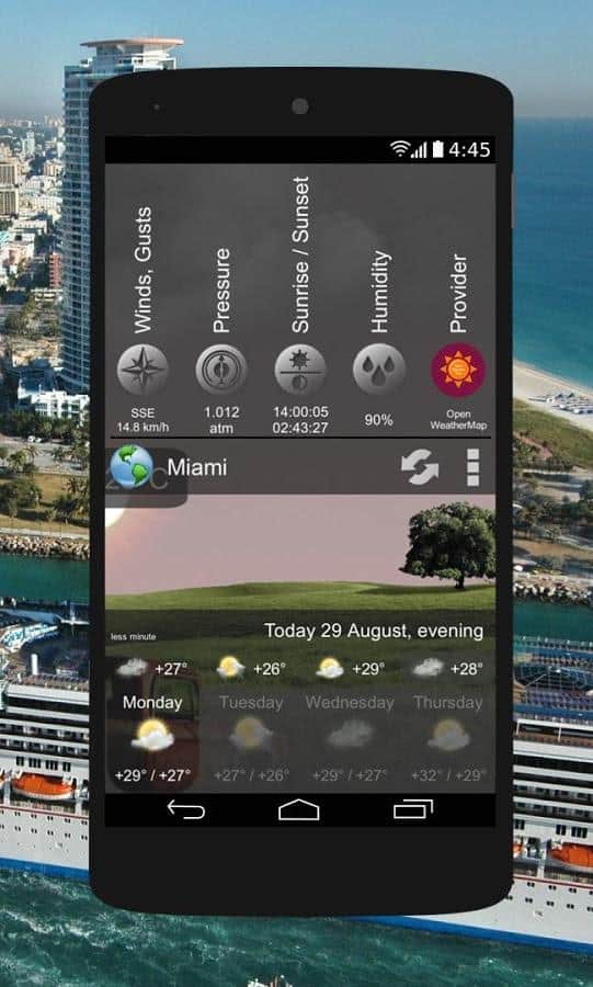 Animasyonlu Hava Durumu Widget'ı ve Saat – Mobilityflow Publishing tarafından geliştirilen, gerçek hava durumu efektleri (yağmur, kar, bulutluluk vb.) ile Android için eğlenceli bir hava durumu ve saat widget'ı indirin. Widget, dünya genelinde 50.000'den fazla şehirde hava durumunu gösterecek ve tüm gün için detaylı bir tahmin sunacaktır (sabah, öğle, akşam, gece). 4+ gün ileriye dönük hava durumu tahminini görüntüleme imkanı bulunmaktadır.