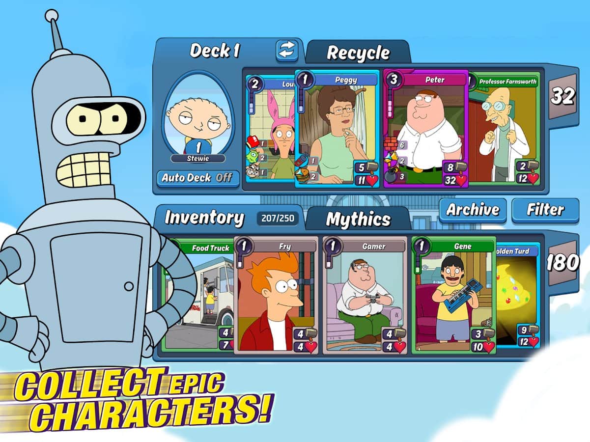 Animasyon Atışması: TQFC - beş en popüler animasyon şovuna dayanan klasik bir kart koleksiyon oyunudur; bunlar arasında FAMILY GUY! BOB'S BURGERS! FUTURAMA! AMERICAN DAD! KING OF THE HILL!