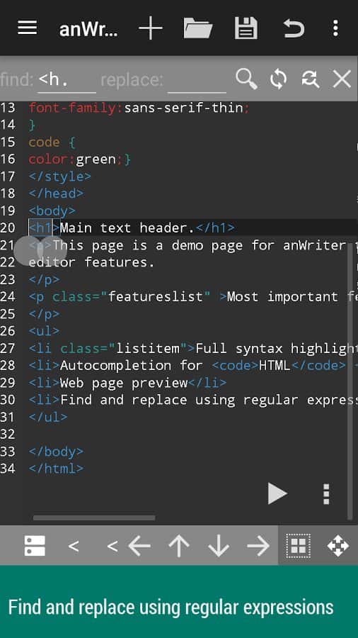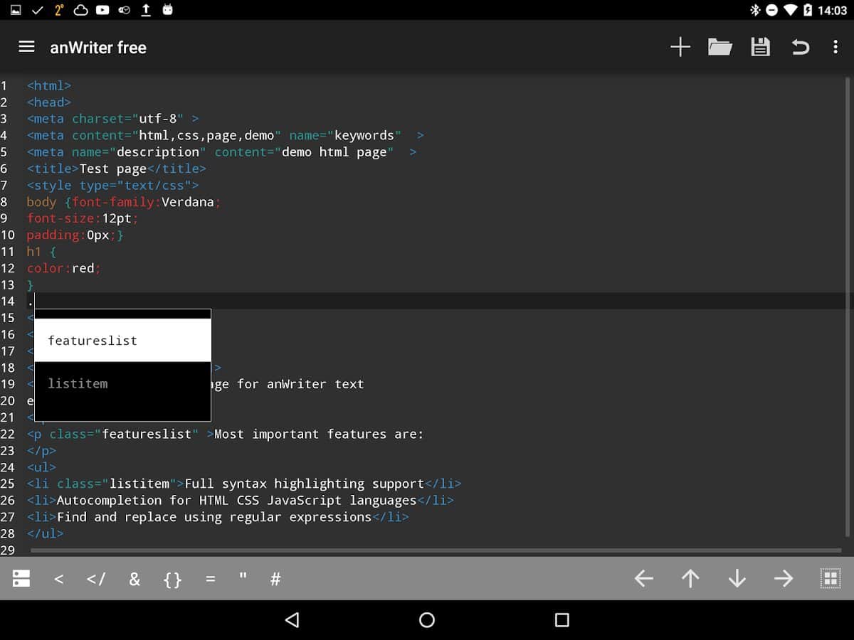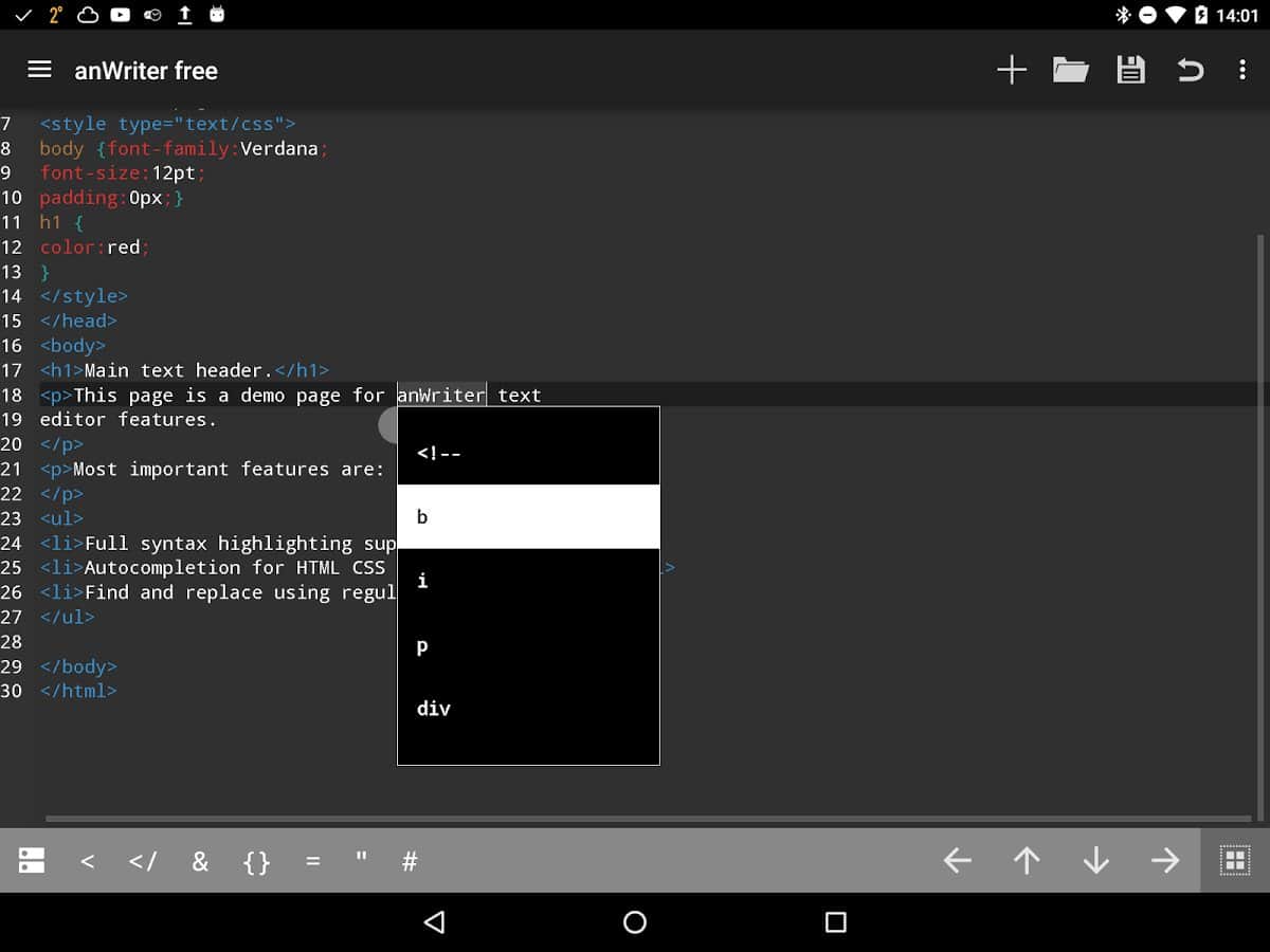 anWriter ücretsiz metin editörü - İlk bakışta oldukça sıradan bir metin editörü gibi görünüyor, ancak daha dikkatli bakarsanız birçok ek işlevi olduğunu göreceksiniz. Standart işlevlerinin yanı sıra, bu uygulama: sözdizimini vurgulama, onu hazır seçeneklerle değiştirme, metindeki hataları bulma ve daha fazlasını yapabilir. Ayrıca HTML, CSS ve JavaScript dilleri için otomatik tamamlama desteği sunduğunu belirtmek gerekir, bu da web programcıları için işi büyük ölçüde kolaylaştırır. Ancak yine de onu sıradan bir not defteri olarak kullanabilirsiniz.