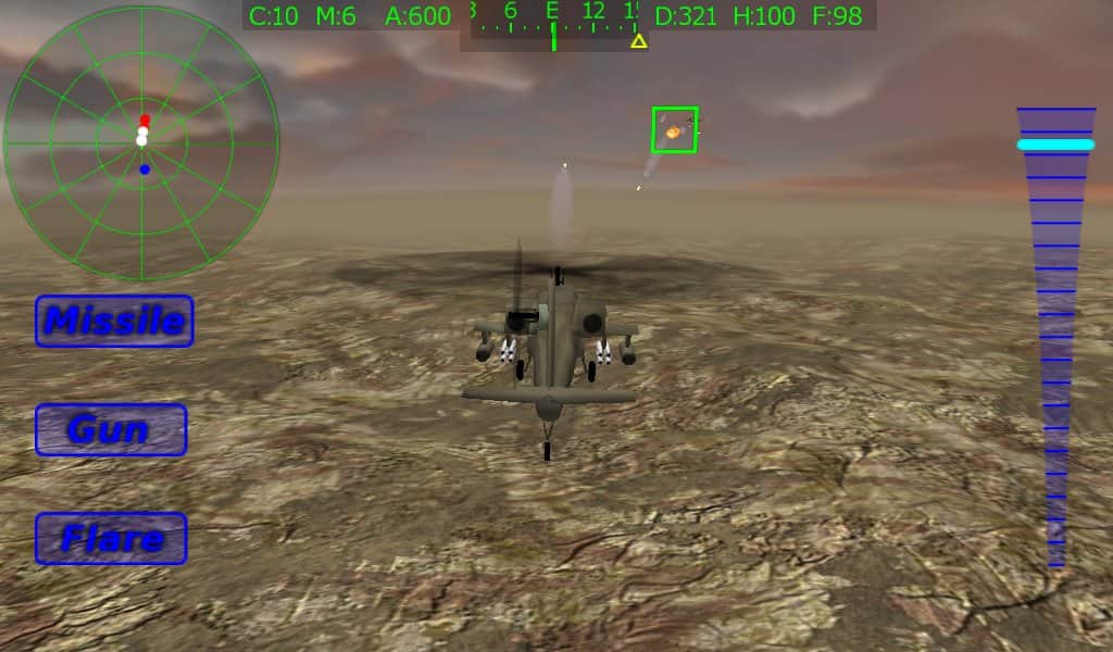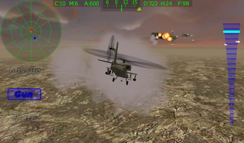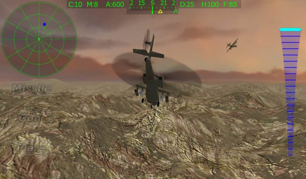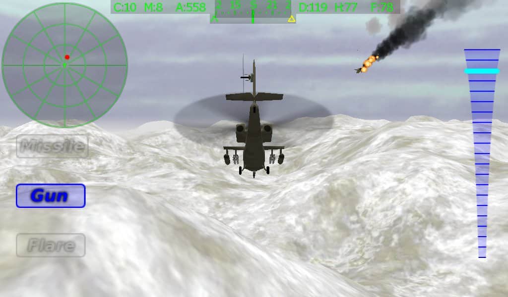 Apache Chopper Pilot 3D HD - Android için tasarlanmış, helikopter yönetimi ve savaşını konu alan 3D HD grafikle yapılmış bir arcade simülatörüdür. Sizi helikopteri sezgisel bir şekilde kontrol etme ve gökyüzünde ve yerde nesneleri yok etme heyecanlı savaşları bekliyor.