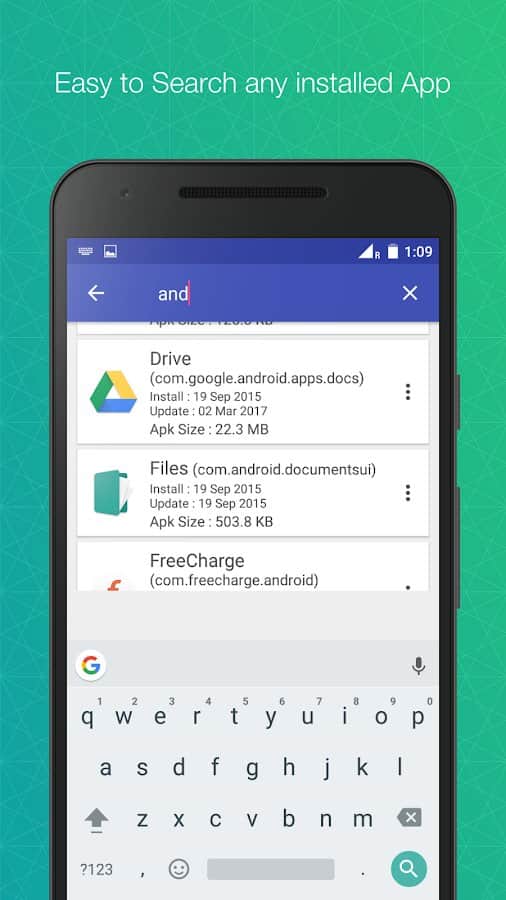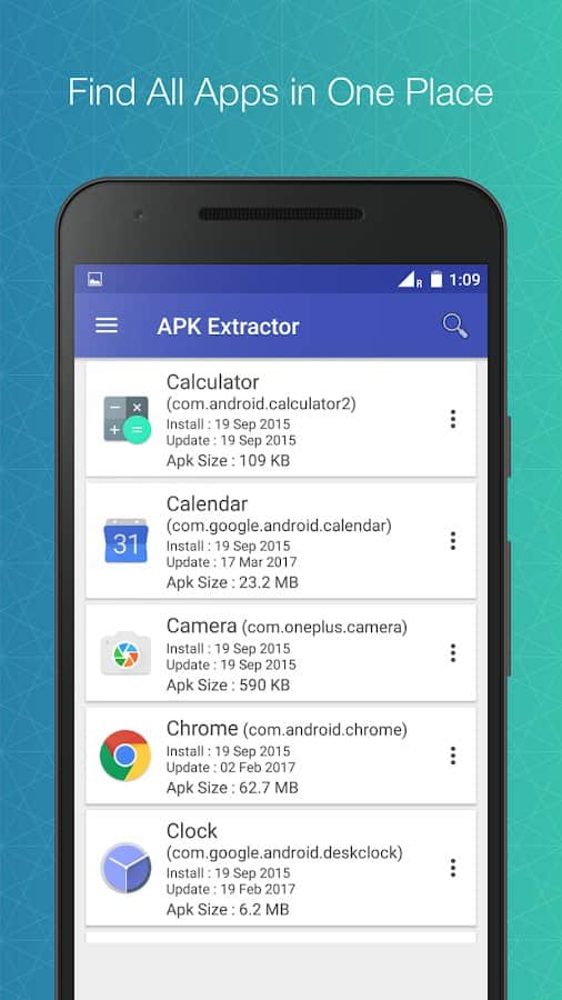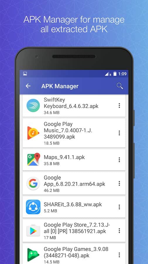 Bu uygulama, bir apk dosyası oluşturmanıza veya üretmenize ve bunu hafıza kartına veya başka bir cihaza aktarmanıza olanak tanır. Ayrıca, cihazınızın hafıza kartında bulunan uygulamaların tam listesini görüntüleyebilirsiniz.