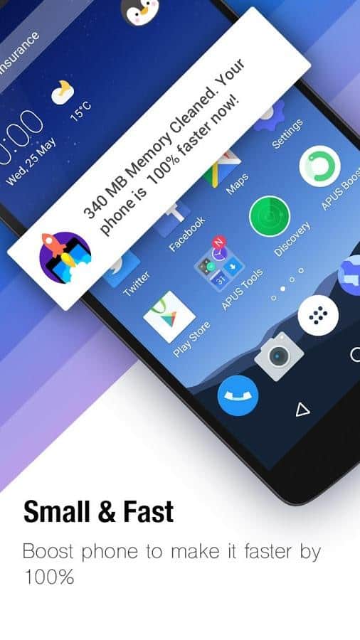 APUS Launcher - hafif, hızlı bir başlatıcıdır ve birçok avantajı vardır. Kesintisiz ve yavaşlamadan çalışır. Başlatıcı yalnızca 1 megabayt yer kaplar ve çalışma alanının %80'ine kadar tasarruf sağlar.
