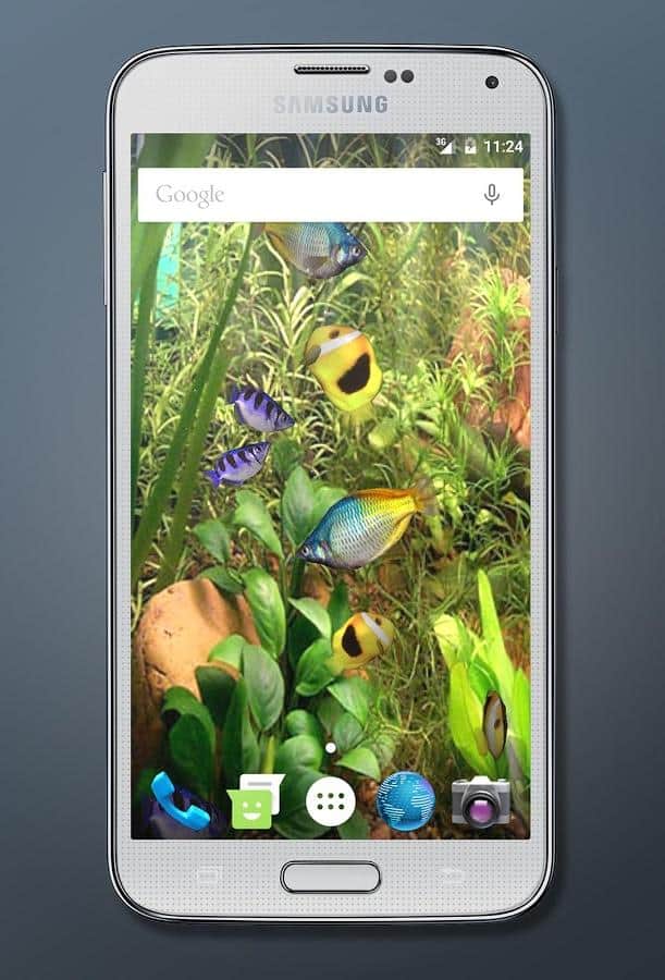 Aqua 3D Canlı Duvar Kağıdı – Android telefon veya tabletiniz için, inanılmaz derecede gerçekçi bir su altı dünyasını önünüze serecek canlı duvar kağıtları. Duvar kağıtlarını cihazınıza yüklediğinizde, yosunlar ve mercanlar arasında yüzen farklı renklerdeki güzel tropik balıkları göreceksiniz. Ekranınızda kristal berraklığında suda yavaşça yüzen güzel balıkları izleyin. Duvar kağıtları ayrıca harika bir arka plan, animasyonlu hava kabarcıkları ve suyun derinliklerinden süzülen güneş ışınları ile sizi mutlu edecek. Hoş bir görüntü ve size ve arkadaşlarınıza hitap edecek foto-gerçekçi 3D grafikleri ile keyfini çıkarın.