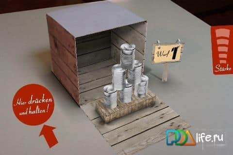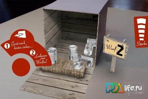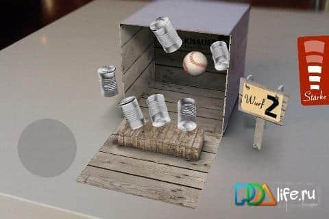Oyun fikri AR-App - Konserve Atma gerçekten muhteşem! Böyle bir şey daha önce hiç olmamıştı! Akıllı telefonunuzun entegre kamerasıyla "kutuyu tarıyoruz", ilk ekran görüntüsünden yazdırabileceğiniz kutu. Ve şimdi sizi en ilginç kısım bekliyor. Kutu sanal dünyaya dalıyor ve sanal konum koordinatlarını alıyor. Sonra kutu açılıyor ve açılan kapak üzerinde devrilmesi gereken konserveler beliriyor. Ama burada da her şey bu kadar basit değil. Topu fırlatmak için kutuya yaklaşmanız, ekrandaki kırmızı düğmeye basmanız, ardından akıllı telefonu geriye çekmeniz ve düğmeyi bırakmanız gerekiyor - kısacası sanal mancınık prensibi. Sağda atış gücünün ölçeği var, bu da atışın rotasını ve hızını belirliyor. Ne yazık ki "büyülü" kutunun görüntüsü olmadan oynamak mümkün değil. AR-App - Konserve Atma oyununu android 2.1 için indirin ve arkadaşlarınızı şaşırtın.