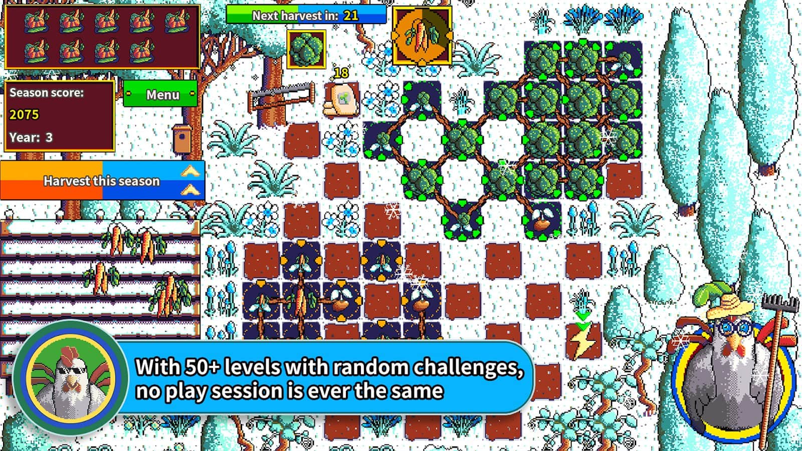 Arabilis: Süper Hasat - Bulmaca unsurları içeren, renkleri eşleştirme şeklinde ve roguelike unsurlarıyla dolu bir çiftlik atmosferine dalın; burada 50'den fazla bahçe oluşturup yönetmeniz gerekecek. Tüm 4 mevsim boyunca bir şeyler ekmeniz, bahçelere bakmanız, yetiştirmeniz ve hasat yapmanız gerekecek, ancak her seferinde sonuç doğanın yasaları nedeniyle farklı olacaktır. Tüm hava koşulları, zararlı böcekler, doğal felaketler ve diğer olaylar, bahçelerinize ektiğiniz her şeyi yok etmeye katkıda bulunabilir, bu yüzden çeşitlilik için arabilis, rahatlama ve hasat modlarında oynamayı deneyin.