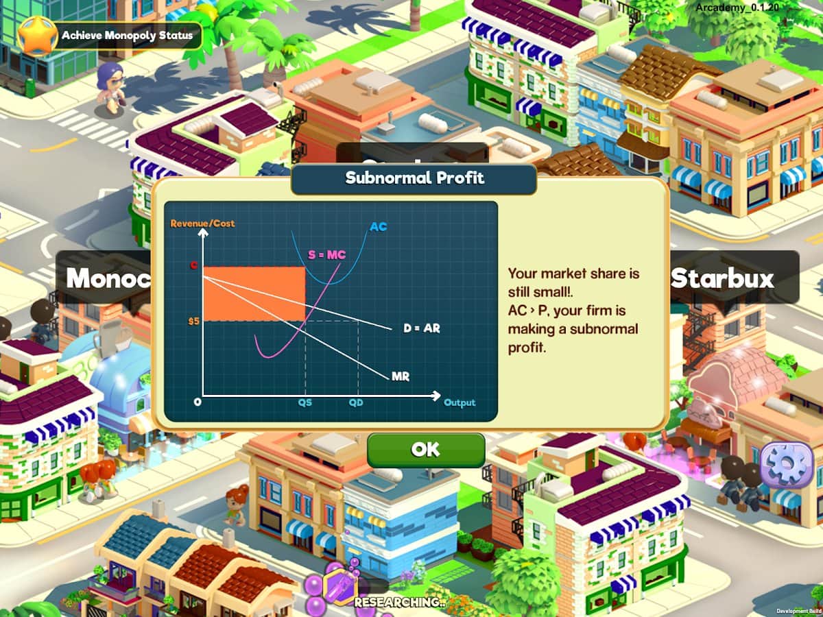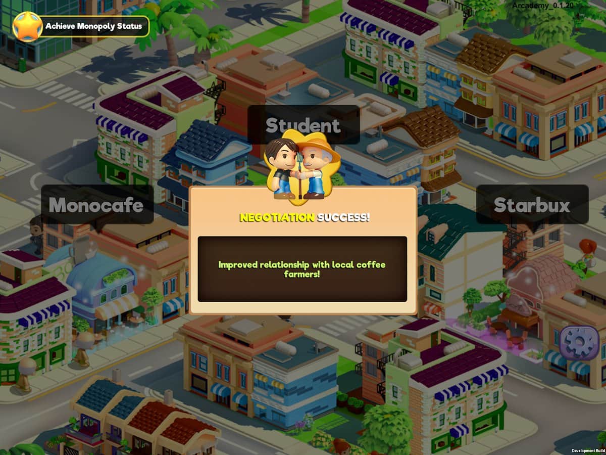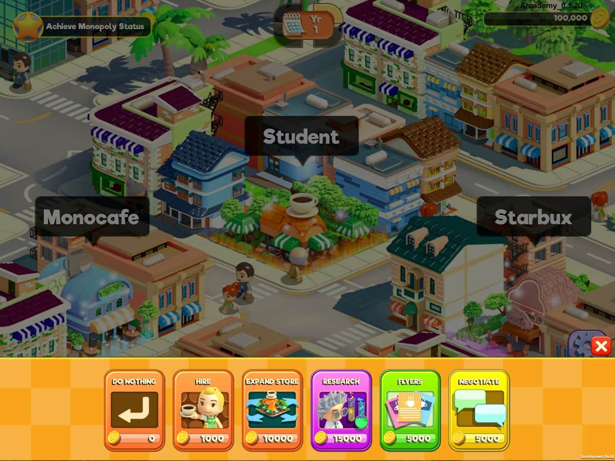 Arctopia: Tekel Yolunda - Küçük Arctopia şehrinde, ünlü bir zincir kahve kafesinin şubesinin yöneticisi olarak yeni atandınız ve amacınız, Arctopia şehrinde kahve pazarını tekel haline getirmektir. Oyunda üç ana rakibiniz var ve onlarla bir şekilde rekabet etmeye başlamalısınız. Başlangıç olarak, rakiplerinizle rekabet etmek için fiyatlandırmaya dayalı bir strateji ile başlayın. Oyunda, işinizin büyümesine ve Arctopia'da kahve tekelcisi olma hedefinize ulaşmanıza yardımcı olacak anahtar kararlar ve eylemler alma sorumluluğuna sahipsiniz!