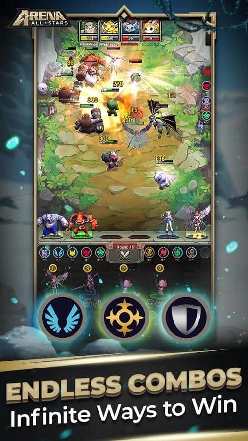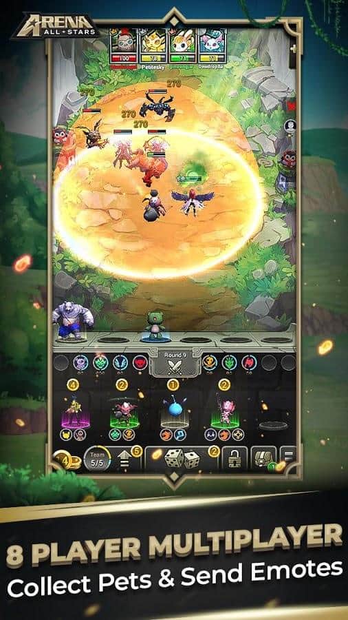 Arena Allstars - Android için sırayla oynanan bir strateji oyunudur, burada en iyi unvanı kazanmak için savaşacaksınız. Yedi rakiple gerçek zamanlı epik bir savaş veya hızlı bir dövüş arasında seçim yapın. Kendinize özgü takımınızı oluşturun, iyi düşünülmüş bir strateji uygulayın ve hayatta kalmaya çalışın. Aylık turnuvalarda rekabet edin, liderlik tablosunda ödül kazanmak için yer alın ve oyuniçi bir kupa kazanarak daha yüksek bir rütbe elde edin.