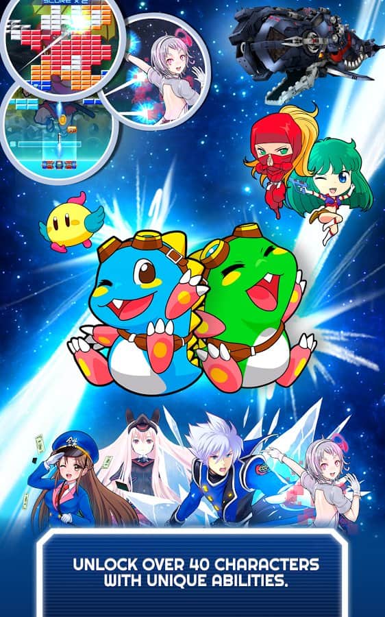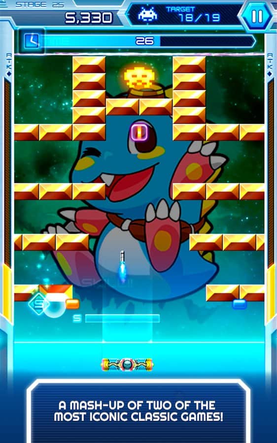 Arkanoid vs Uzay İstilacıları – Android için bir arcade oyunu, burada Arkanoid ve Uzay İstilacıları gibi iki popüler oyun birleşti. Bu oyundaki ana göreviniz sayısız düşmanı yok etmek ve güçlü patronlarla karşılaşmaktır. Düşmanlara ateş edin ve mümkün olduğunca fazla bloğu tek bir darbe ile yok edin. Enerjinizi biriktirin ve saldırı moduna geçerek önünüze çıkan her şeyi yok edin. Savaşta 20'den fazla farklı yetenek kullanın ve zorlayıcı bulmacaları çözün. Üç boyutlu patronları yok edin ve galaksiyi kurtarın. Oyunda 40'tan fazla yeni kahramanı keşfedin.