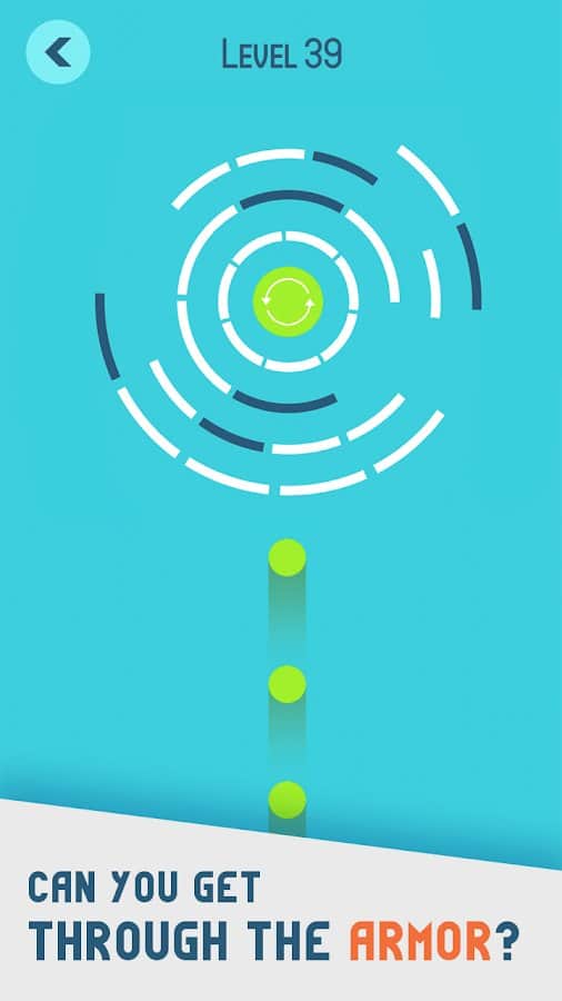 Zırh: Renkli Daireler – Android için eğlenceli bir arcade oyunu, burada tepkilerinizi pratikte test edeceksiniz. Bu oyunda ana göreviniz, farklı nesnelerle ateş etmek ve ekranın ortasındaki çekirdeği yok etmek için elinizden geleni yapmak olacak. Oyunun zorluğu, çekirdeğin dönen daireler tarafından korunmasıdır. Uygun anı bekleyin ve nesneleri çekirdeği ilk seferde yok edecek şekilde ateş edin. Oyunda birkaç oyun modu bulunmaktadır, hepsini deneyin ve harika sonuçlar elde edin. 825 aşamayı geçin ve sonsuz oyunun tadını çıkarın. Arka plan rengi aşamalar arasında değişecektir.