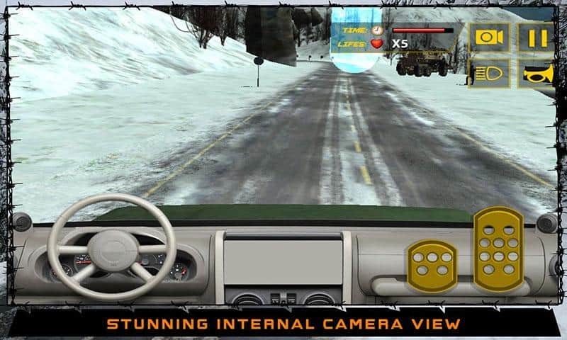 Askeri Savaş Kamyonu Sürücü Simülatörü 3D – android için bir simülatör, burada bir kamyon sürücüsü rolünü üstleneceksiniz. Bu oyunda, farklı bölgelerde gerçekleşen çeşitli çatışmalara katılacaksınız. Kamyonun direksiyonuna geçin ve yük ve asker taşıma görevlerini yerine getirin. Tüm arazi koşullarına uygun kamyonunuz güçlü silahlarla donatılacak ve düşmanlara karşı savunma yapabilirsiniz. Savaş zamanı işinizi yapın ve yetenekleriniz ve becerileriniz yalnızca hayatınızı değil, askerlerinizin hayatını da belirleyecektir. Karla kaplı yollar boyunca gidin ve düşmanın tüm hedeflerini ortadan kaldırın.