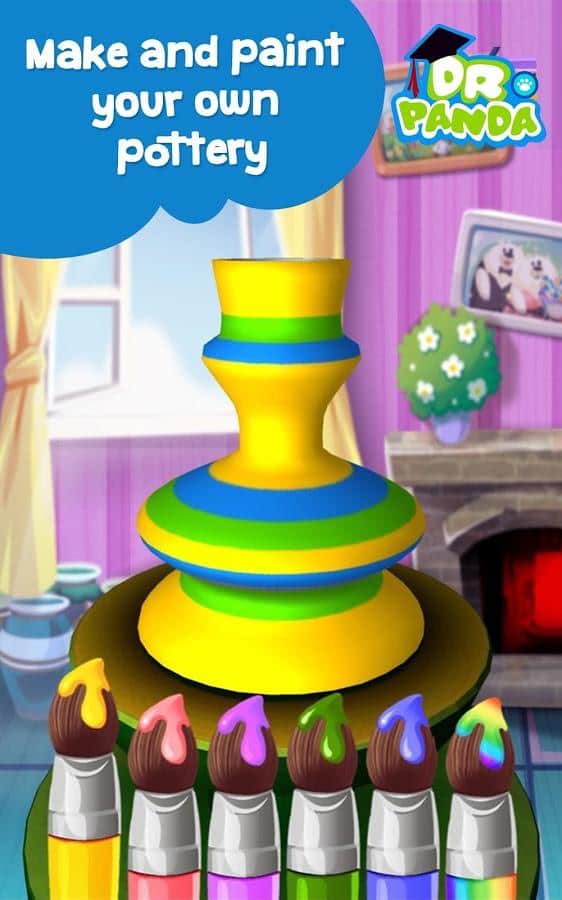 Dr. Panda ile Sanat Sınıfı - Android için bir oyun, bu oyunda çocuğunuz Dr. Panda ile birlikte el sanatları yapacak. Renkleri, kalemleri, makasları, yapıştırıcıyı alın ve kendi uçurtmanızı veya rüzgar gülünü yapmayı deneyin, ardından onu gökyüzüne uçurun. Kilden çeşitli vazo, sürahi ve fincanlar yapın ve bunları istediğiniz gibi boyayın. Oyun, okul öncesi çocuklar için tasarlanmıştır ve çocuk oyun içinde ve gerçek hayatta el becerileri geliştirmeyi öğrenecektir.