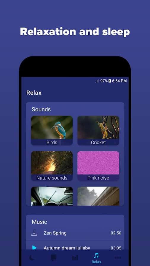 Yoğun ve stresli bir günün ardından uzun süre uyuyamazsanız, uyku uygulaması size yardımcı olacaktır. Rahatlatıcı uyku veya meditasyon sesleriyle gevşeyin, "anti-horlama" fonksiyonunu ayarlayın ve hızlı bir şekilde sakinleşip uykuya dalmanıza hiçbir şey engel olmasın. "Akıllı alarm" kurun, gece sesleri kaydını başlatın, uyku istatistiklerinizi ve uykuya dalma aralıklarınızı takip edin, uygun uyku evresini seçin, bu izleme ile ilgili önemli verileri kaydedin. Böylece rahatlama ve uykuya dalma kalitesini etkileyen faktörleri kontrol edebilir ve farklı türlerdeki en uygun rahatlatıcı sesleri seçebilirsiniz.
