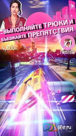 Asfalt: Takip - en bilinen yarış serisinin farklı bir sunumudur. Yani, önünüzde geleneksel anlamda bir yarış yok, daha çok bir koşucu var. 1980'lerin Kaliforniyası, görevler ve görevler, araba yükseltme, enerji sistemi vb. Arabanızı üç şerit arasında hareket ettirin, diğer araçlara çarparak yolunuzu temizleyin. Eğer görevleri yerine getirmekten sıkılırsanız - zamanla oynayın veya numara modunda, kurallara göre bir yarış, yıkım modu vb. Oynayın. Tanıdık oyunun yeni bir türünün ve değiştirilmiş oyun mekaniklerinin tadını çıkarın.