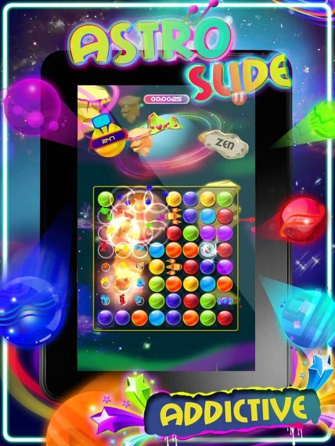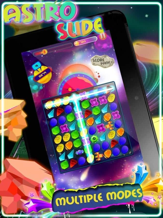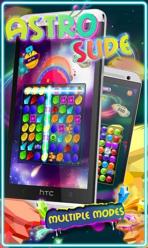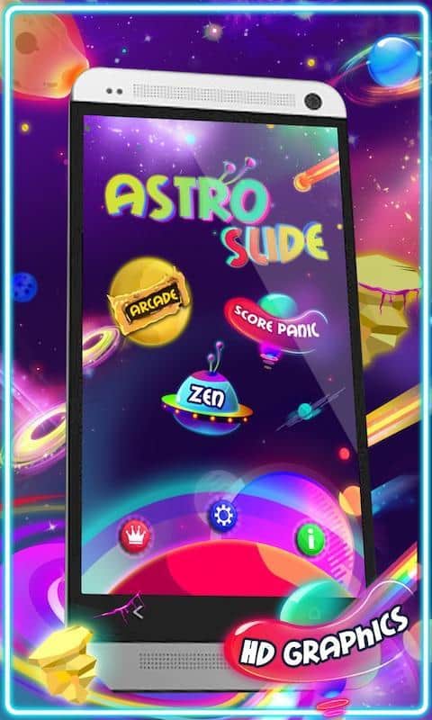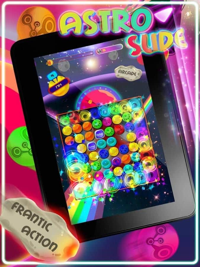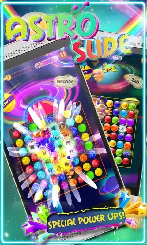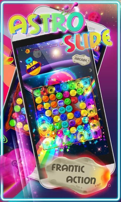 Astro Slide - Android için heyecan verici bir üçlü eşleştirme bulmacası. Bu tür oyunlarda olduğu gibi, aynı renkteki topları toplamanız gerekecek. Ancak bu oyun benzerlerinden farklı. Burada birkaç oyun modu ve süper efektlerle muhteşem grafikler var. Bu efektlerden yalnızca belirli bir şekil ile bir zincir oluşturduğunuzda yararlanabilirsiniz. Bunun dışında sizi zaman modu bekliyor.