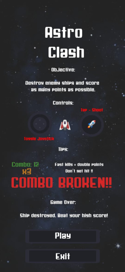 AstroClash — dinamik bir dikey nişancı oyunu, burada zafer hızınıza ve soğukkanlılığınıza bağlı. Kombinasyon zincirleri oluşturun, puanlarınızı katlayın ve tempoyu koruyun; çünkü bir tek vuruş tüm ilerlemenizi sıfırlar. Düşman dalgalarını ve patronları yenin, sağlık paketleri toplayın ve zirve sıralamasında kalabileceğinizi kanıtlayın. Oyun, heyecanı, anlık karar vermeyi ve her mücadelenin artan gerilimini sevenler için tasarlandı.
