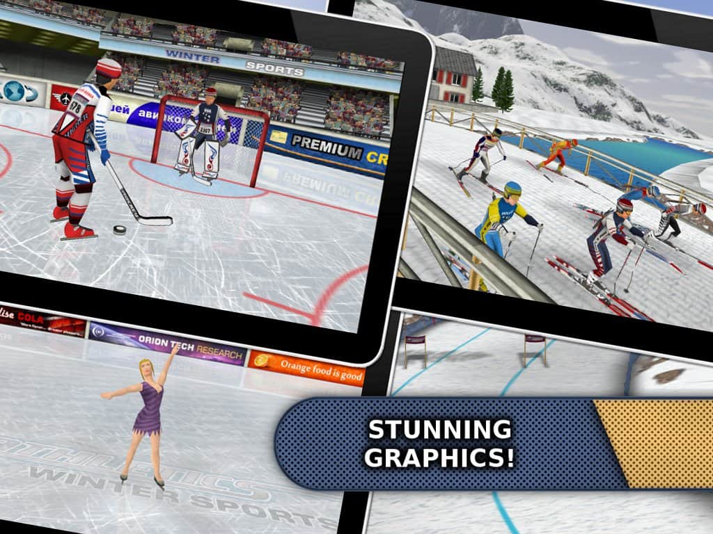 Atletizm: Kar Sporları / Atletizm: Kış Sporları - Android için kış sporları oyunları derlemesi, içinde biyatlon, kayak, kayakla atlama, snowboard ve diğer ilgili sporlar gibi 28 farklı yarışmanın bulunduğu bir oyun. Oyun, iyi detaylandırılmış grafiklerle iyi bir şekilde çizilmiştir. Sizden birçok dinamik eylem ve oldukça fazla beceri gerekmektedir. Ayrıca oyun, iki kişiyle bir cihazda rekabet edebilme imkanı sunarak çok oyunculu özelliği ile övünmektedir.