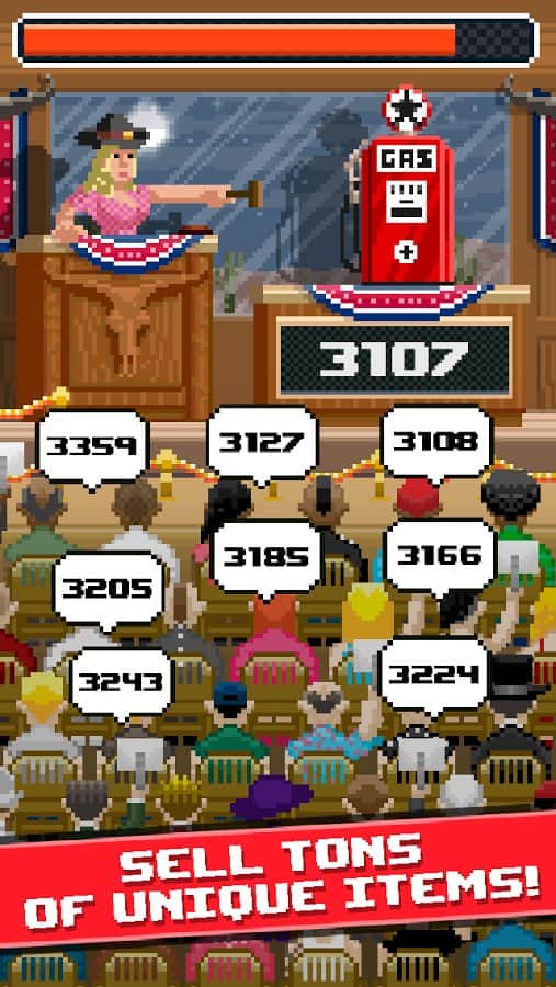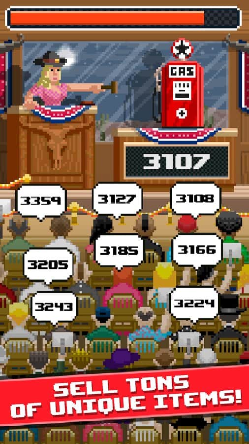 Müzayedeci - basitçe mükemmel zaman öldürücülerden biri olarak adlandırılabilecek bir oyun. Bu türdeki oyunların büyük bir kısmının oldukça düşük kalitede olduğu, hem oyunun uygulanması hem de doğrudan oyun deneyimi açısından bir sır değil, ancak Müzayedeci kesinlikle bunlardan biri değil. Genel olarak, Müzayedeci'nin Android için oyun mekaniği, bir dokunmatik arcade ile bir tıklayıcı arasında bir karışım sunuyor, burada yeni bir şey yok, geliştiriciler de popüler retro tarzını seçerek görsel stil açısından orijinal olmadılar. Ancak geri kalan her şey olağanüstü, bu sefer inek veya koyun yetiştirmek, yüzlerce canavarı veya yaratığı yok etmek zorunda kalmayacaksınız, şansınıza müzayede sahibi olma rolünde kendinizi deneme fırsatını buldunuz. Yüzlerce nadir ve pahalı nesneyi en yüksek fiyattan satın, kazandığınız parayla becerilerinizi geliştirin ve yeni binalar satın alın.