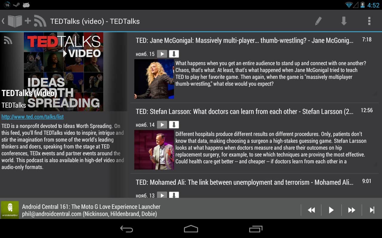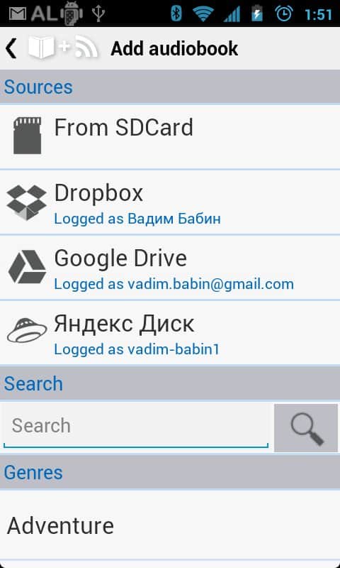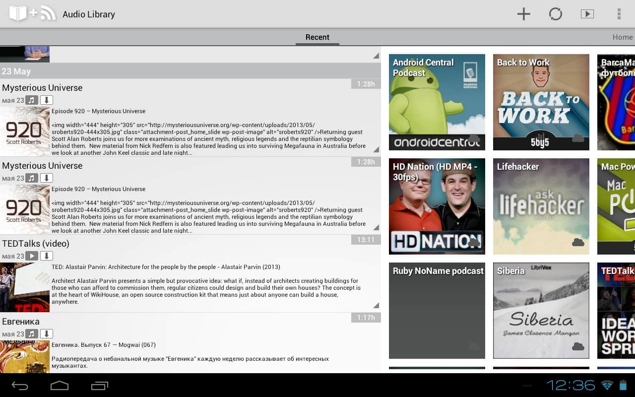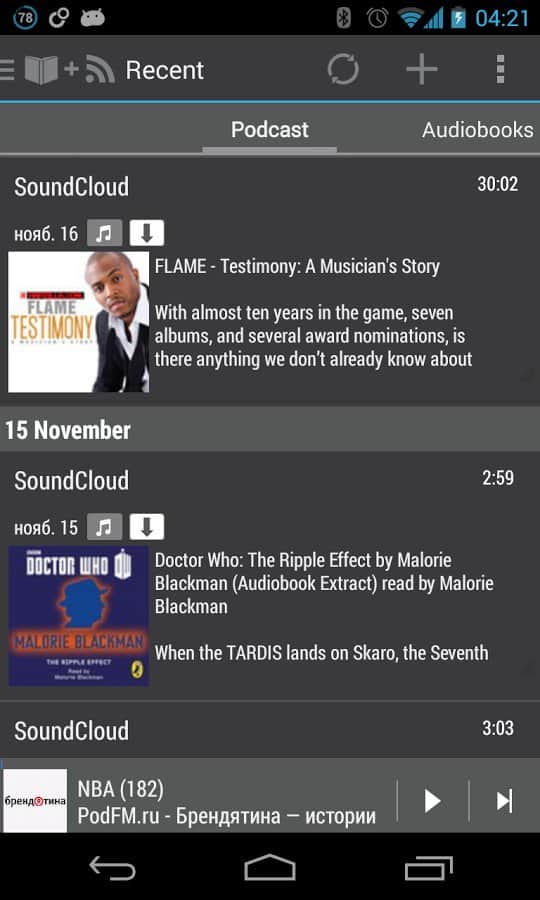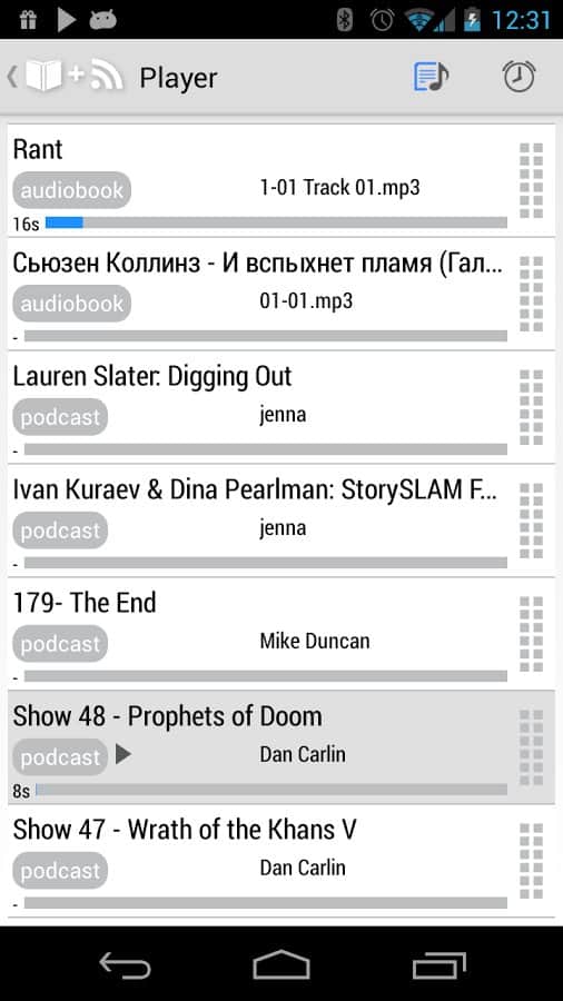 Ses Kütüphanesi - Vadim Babin tarafından geliştirilen Android cihazınızda sesli kitaplar ve podcast'ler dinlemek için bir uygulama, SDCard, Dropbox, Google Drive, Yandex Disk gibi tüm depolama alanlarından kitap ekleme imkanı ile. Hoş bir tasarım, açık erişimde büyük bir podcast ve sesli kitap koleksiyonu, masaüstü için widget'lar, desteklenen formatlar listesi: mp3, ogg (ses, video), wave, flac, m4a, m4b, mp4, webm (ses, video) ve daha birçok şey, en sevdiğiniz kitap türlerinin tadını istediğiniz zaman ve istediğiniz yerde kolayca çıkarmanızı sağlar.