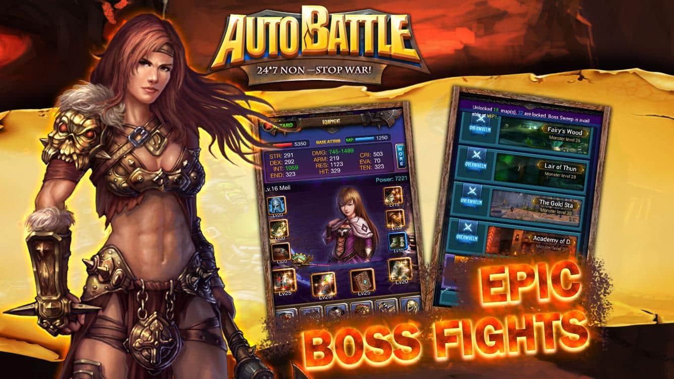 Otomatik Savaş – karanlık zindanlarda sonsuz canavarlarla heyecan verici dövüşler. Bu MMORPG türünün en iyi oyunu, arenada korkunç canavarlar ve düşmanlarla savaşarak yer alabileceğiniz bir oyun. Üç sınıftan kendinize uygun bir savaşçı seçin – savaşçı, büyücü veya avcı ve yeteneklerinizi geliştirin, takım savaşlarında kazanarak değerli ödüller ve harika bir ün kazanın. Patronları yok etmek ve lider olmak için stratejinizi uygulayın. Bu tür oyunların aksine, otonom modda savaşmaya devam edebilir, gizemli zindanları keşfederek orada silah ve zırh arayabilir, dövüş sanatlarının temellerini öğrenebilir ve kahramanınızı geliştirebilirsiniz.