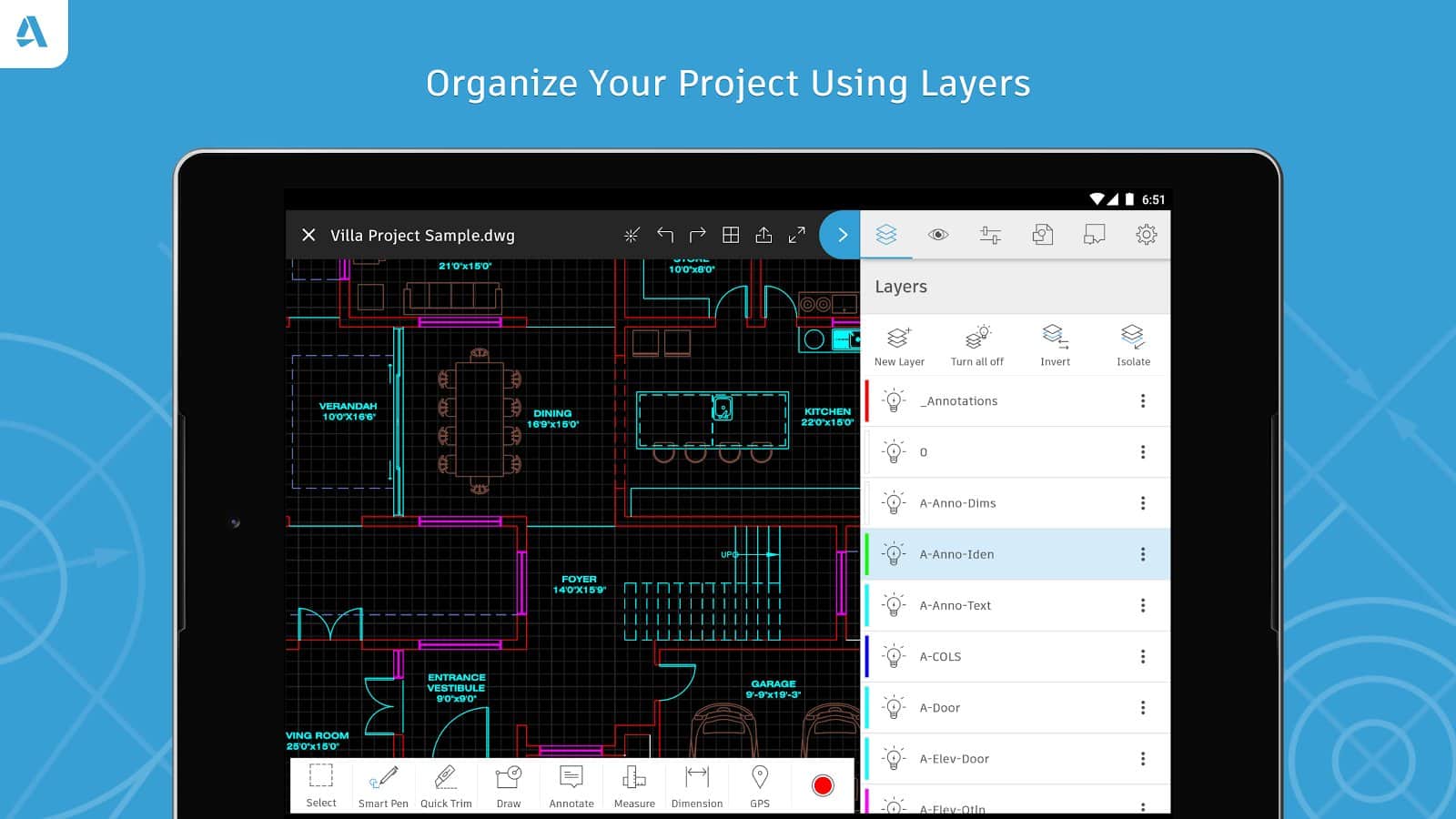 AutoCAD 360, en iyi geliştirici Autodesk Inc.'den Android için. Artık daima elinizin altında olacak, mimarlar için oldukça yararlı ve vazgeçilmez bir program. DWG dosyalarını görüntüleyin, düzenleyin, kullanın, işaretleme yapın, dosyaları internette senkronize edin veya doğrudan AutoCAD yazılımından çizimleri yükleyin ve daha fazlası. Projeler üzerinde yolda, evde, her zaman, gün veya gece fark etmeden, bulunduğunuz yere bağlı olmaksızın çalışın.