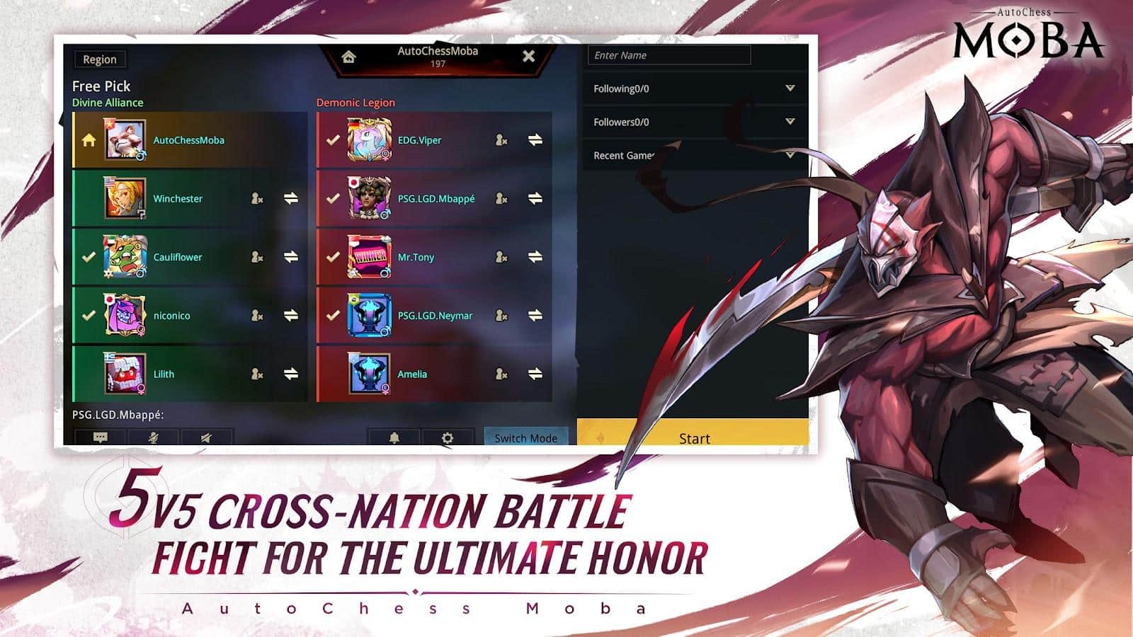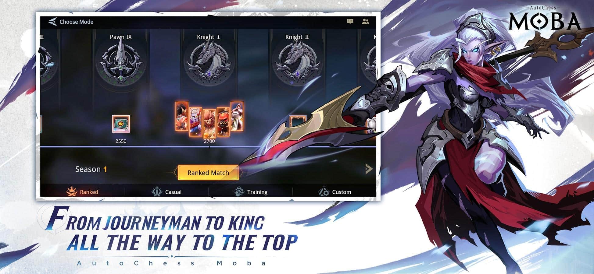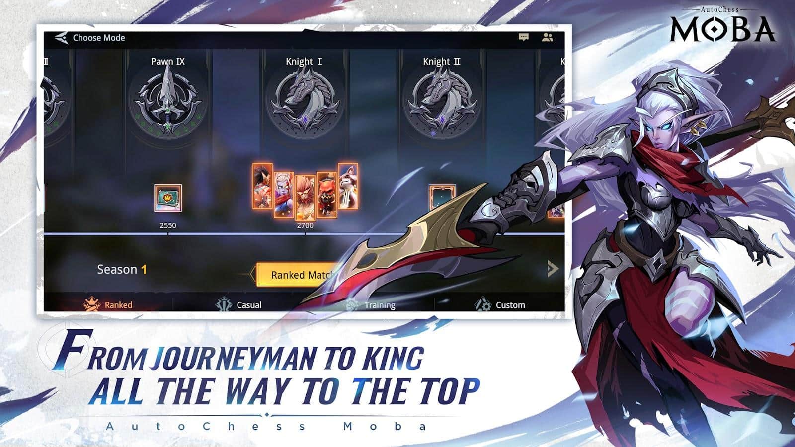 AutoChess Moba - Arenada tüm gizli potansiyelinizi ortaya çıkarın. Özellikle 5'e 5 savaşlarla, Çırak statüsünden en yüksek pozisyona - Kral'a yükselme fırsatını yakalayabilirsiniz. Ayrıca, karakterlerin en iyi ve en kötü yönlerini öğrenin; bunlar arasında: üst koridor oyuncusu, yan yol biçici, hızlı haydut ve diğerleri olacak.