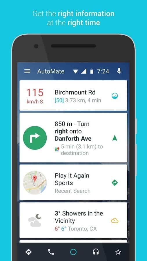 AutoMate - Araç Gösterge Paneli - Sık sık araç kullananlar için kullanışlı bir başlatıcı. Bu uygulama standart masaüstünüzü değiştirecek ve eğer şu anda araç kullanıyorsanız, onu daha pratik hale getirecektir. Yalnızca temel işlevleri kullanabileceksiniz; yani gps, aramalar, saatler ve hava durumu tahmini. Ancak standart işlevler yeterli gelmezse, ihtiyaç duymadığınız işlevleri manuel olarak ekleyebilir veya çıkarabilirsiniz. Kullanışlı arayüz, araç kullanırken akıllı telefonunuzu yönetmeyi çok daha kolay hale getirecektir.