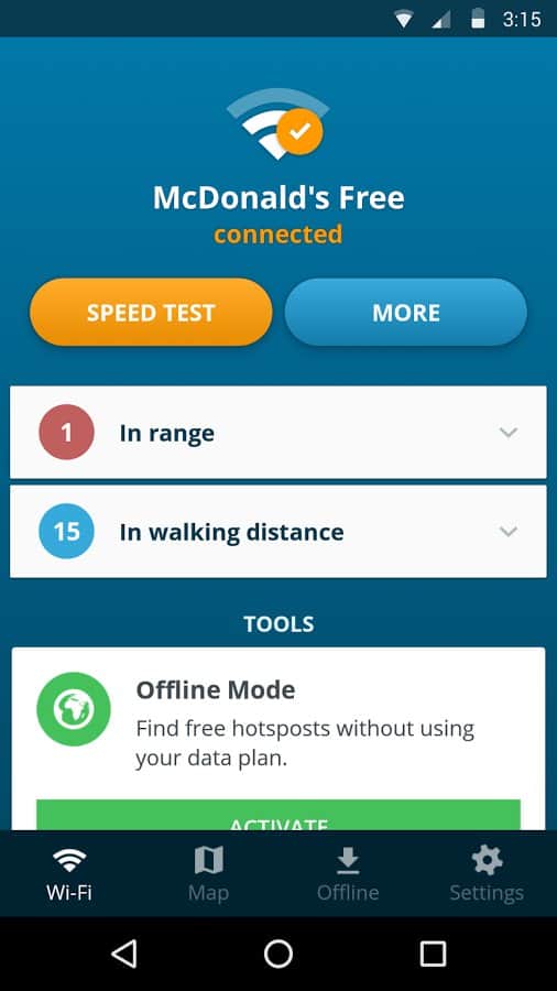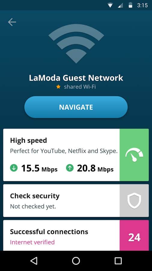 Ücretsiz erişim noktalarını bulma seçeneğinin yanı sıra, program her noktanın sıralamasına, sağlanan hıza ve elbette güvenliğe erişim sağlar.