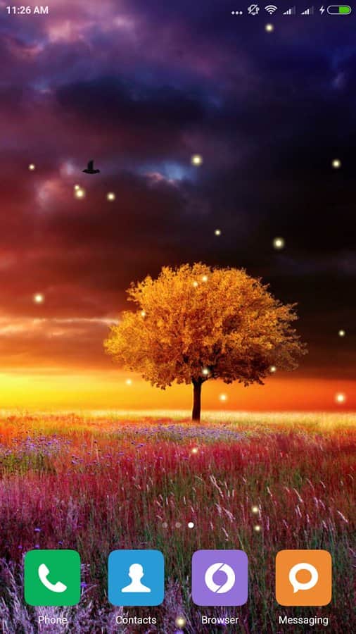 Harika Arazi Canlı Duvar Kağıdı – çılgınca güzel canlı duvar kağıtları mrfarts geliştiricisinden Android cihazlar için. Canlı bir çiçek alanının ortasında yalnız bir ağaç, küçük ateş böcekleri günün her saatinde parıldıyor - bu güzellik, akıllı telefonunuzun ekranında olabilir. Tek gereken, aşağıda verilen bağlantıdan bu duvar kağıdını indirmek.