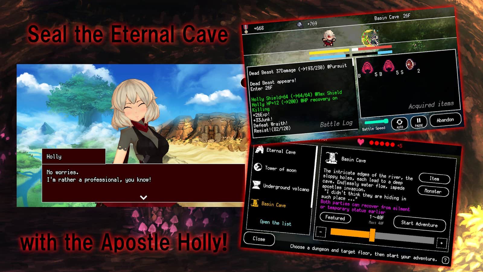B100X - Otomatik Zindan RPG - Uzun zaman önce gökyüzünde bir Tanrı hüküm sürüyordu ve yeryüzünde kanlı şeytanlar vardı, ama her şey bir gün insanlığın ortaya çıkmasıyla değişiyor! İyilik ve kötülük arasındaki savaşa katılmayı kabul etmeniz gerekecek, burada 'Kutsallık' tarafında, 'Sonsuz Büyü Mağarası'ndan gerçek canavarlara karşı koyacak bir havarinin rolünü üstleneceksiniz. Seçtiğiniz zindanın katında kendi yolculuğunuza başlayın ve otomatik olarak dövüşlerde savaşarak elde edilen deneyimi, çöpü ve eşyaları Holly'yi geliştirmek için kullanın.