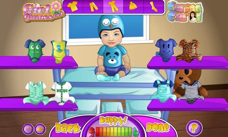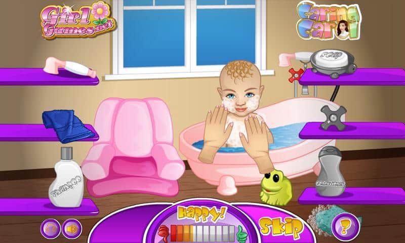 Bebek Oğul Bakım Carol – kızlar için heyecan verici bir oyun, burada bebekle ilgilenecekler. Bu oyunda göreviniz, sırayla bir dizi görevi yerine getirmek ve bunun için olumlu geri dönüşler almak. Öncelikle küvete su doldurun ve bebeğinizi çeşitli şişeler ve nesneler kullanarak yıkayın. Su işlemlerini tamamladıktan sonra, bebeğinizi çeşitli kostümler ve kıyafetlerle giydirmek için diğer malzemeleri kullanacaksınız. Bebeğinizi farklı etkinlikler için giydirin ve tüm bu kıyafetlerle ne kadar sevimli görüneceğini izleyin.