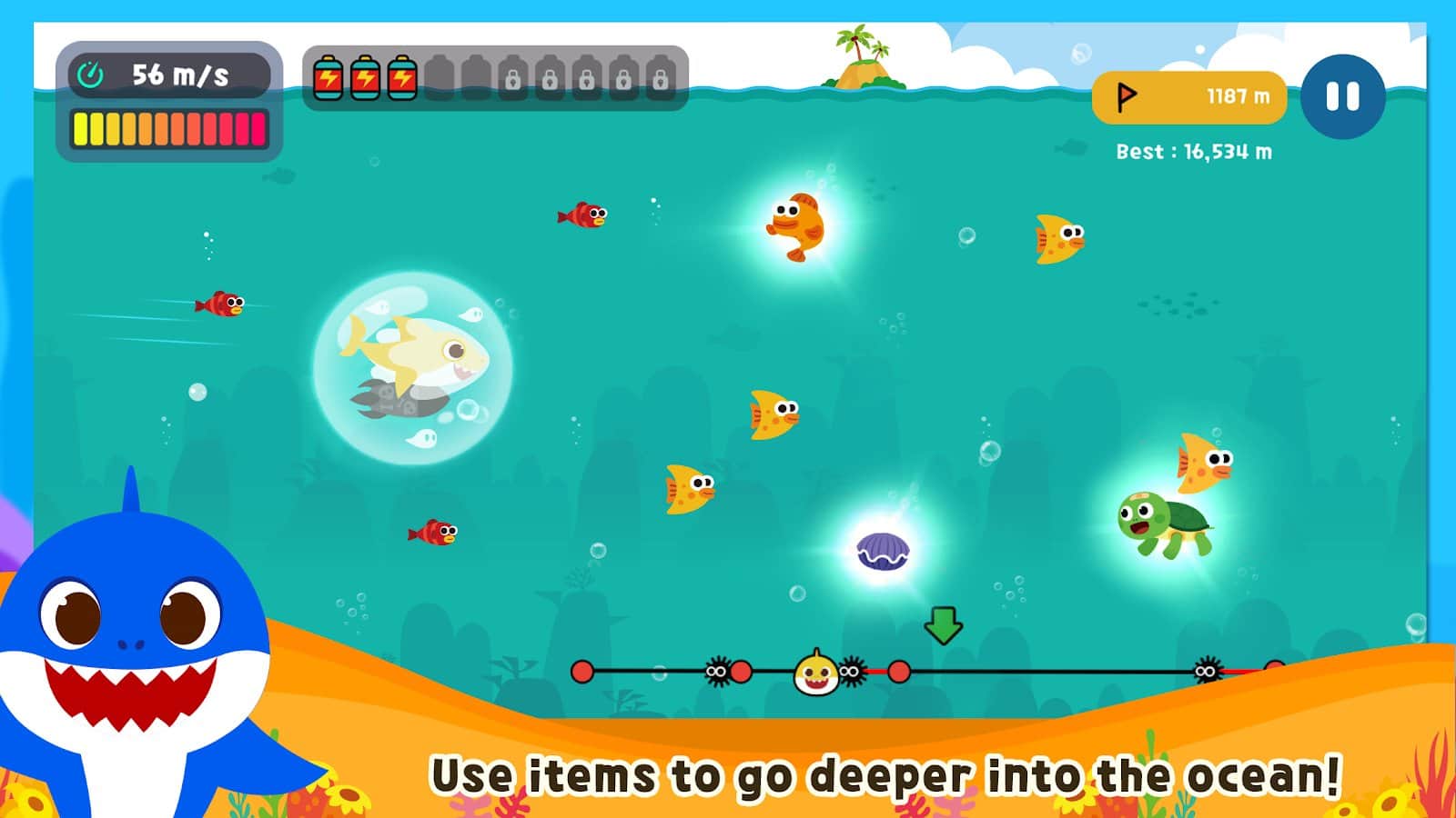 Baby Shark UÇUŞ – Android için etkileyici bir macera oyunu, burada bir köpekbalığını uçuşa fırlatacaksınız. Küçük kahramanımız seyahat etmeyi ve okyanusu keşfetmeyi çok seviyor, ona mümkün olduğunca uzaklara ulaşması için yardım etmelisiniz. Köpekbalığını uçuşa fırlatın ve yol boyunca birçok bonus, madeni para ve güçlendirici toplayarak mümkün olduğunca fazla mesafe kat edin. Köpekbalığını uçuşa fırlatmak için yalnızca bir parmağınızı kullanmanız ve onunla bir çizgi çizmeniz gerekiyor. Bu oyunu boş zamanlarınızda oynayın ve çeşitli görevleri ve misyonları yerine getirerek eğlenceli zaman geçirin. Hızla gerekli mesafeyi kat etmek ve tüm madeni paraları toplamak için bonusları kullanın.