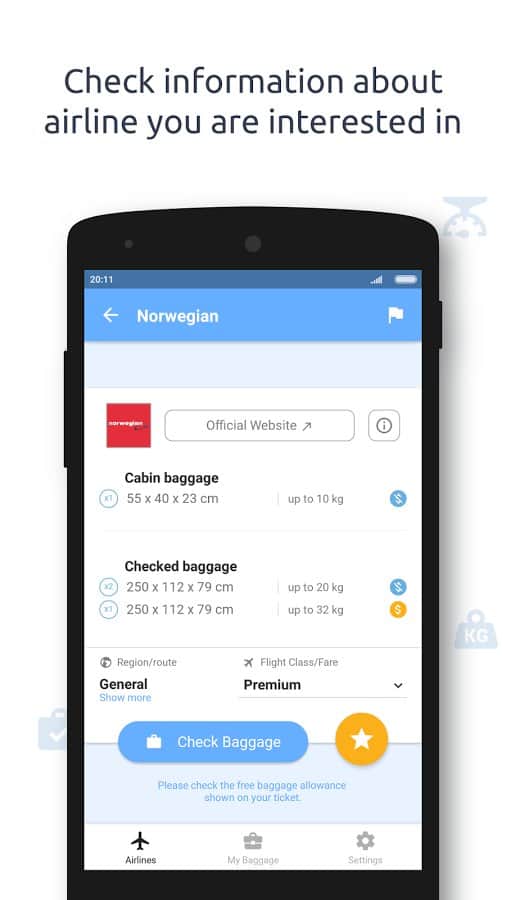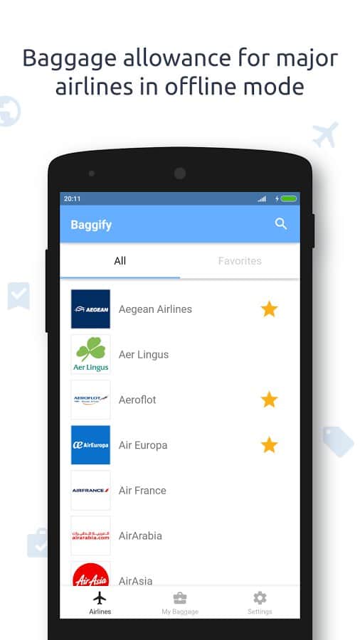 Yorumlar ile Baggify - airlines baggage allowance üzerinde Android