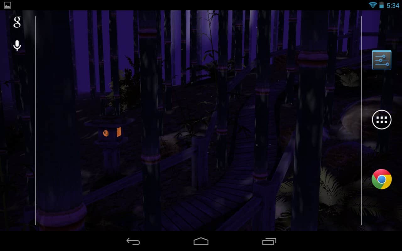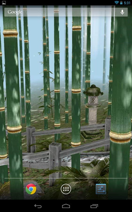 Axiomworks, Inc. geliştiricisinden Android cihazlar için canlı duvar kağıtlarında 3D bambu ormanı, rüzgarın gücüyle hafifçe sallanacak. Şanslıysanız, güçlü yeşil bambu gövdeleri arasında uçan kelebeklerle karşılaşabilirsiniz. Genel olarak ilginç ve rahatsız etmeyen bir deneyim.