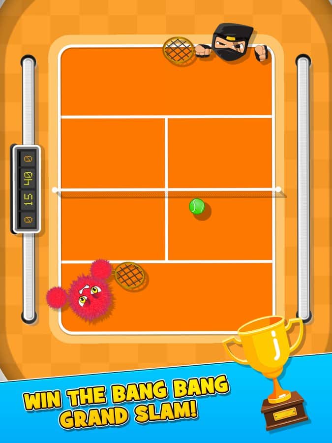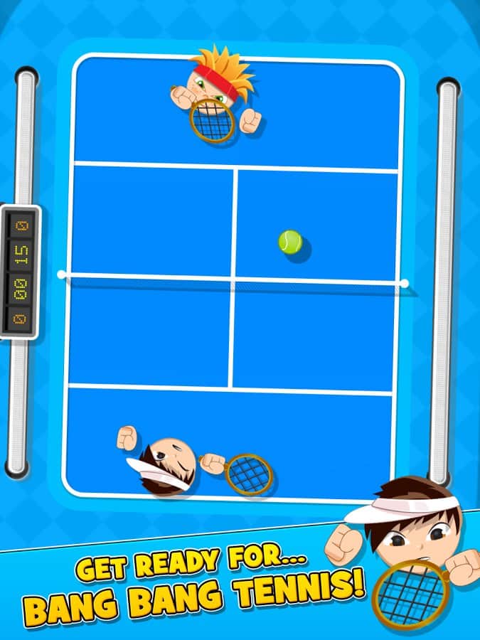 Bang Bang Tenis – üstten görünüşe sahip harika bir tenis oyunu. Bu oyunda deneyimli bir oyuncuyu kontrol altına alacak ve onu kortta rakibin servislerini karşılayarak hareket ettireceksiniz. Farklı turnuvalara katılın ve liderlik tablosunda mümkün olduğunca yükseğe çıkmaya çalışın. Rakibin servislerine dikkat edin ve hepsini geri püskürtün. Topa raketle güçlü vuruşlar yapın ve rakibinizi yanıltarak ona mümkün olduğunca çok puan kazandırın. Bir maçı diğerinin ardından kazanarak puanınızı inanılmaz yüksekliklere çıkarın. Kendine özgü görünüme sahip yeni karakterleri keşfedin. Aynı cihazda arkadaşlarınızla oynayın.