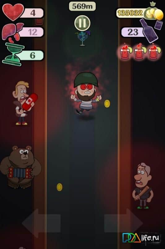 Rusya'daki Bar - Android için neşeli bir koşucu, çeşitli içkiler, huysuz barmenler ve dans eden ayılarla dolu. Bu oyunda bir içki içeni kontrol edeceksiniz, o barda dolaşıp alkol dolu bardakları topluyor. Göreviniz ana karakterin mümkün olduğunca çok bardak ve madeni para toplamasına yardımcı olmak ve bu arada barmenin sıcak ellerine ve özellikle ayıya yakalanmamaktır. Kahramanınız ne kadar çok içerse, onu kontrol etme yeteneğiniz o kadar azalır. Oyun, oyunculara özgün grafikleri, akordeon eşliğinde dans eden ayıları ve çeşitli yetenekler ile şapkalarıyla keyif verecek. Güçlendirici satın alın ve barda sonsuzca dolaşın.