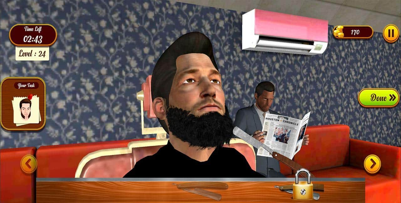Berber Dükkanı Simülatörü 3D – Android için ilginç bir oyun, burada berber rolünü üstleneceksiniz. Jiletinizi elinize alın ve müşterilerinizin sakallarını kesip tıraş edin. Oyunun ilginç seviyelerini geçin ve müşterilerinizin sakallarını öyle bir şekilde kesin ki, mutlu bir şekilde yanınızdan ayrılsınlar. Müşterilerin yüzlerindeki dağınıklığı sakal benzeri bir şekle dönüştürün ve yaptığınız işten büyük keyif alın. Her yeni seviyede oyunun görevleri daha da zorlaşacak. Puan toplayın ve diğer oyuncularla en iyi sonuçlar için rekabet edin.