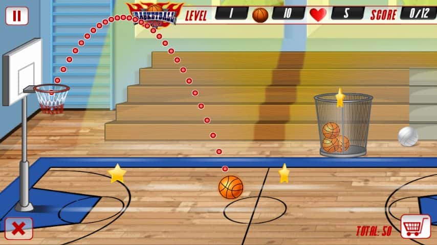 Basketball PRO - Basketbol becerilerinizi geliştirin - bu Android arka plan oyununda topu sepete atın, geliştirici Drobus tarafından. Bir seviyeyi mükemmel bir şekilde geçmek için, topu en kısa sürede atın ve seviyedeki tüm yıldızları toplayın.
