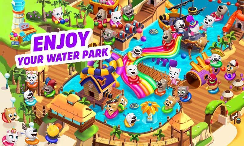 Konuşan Tom'un Havuzu – Android için eğlenceli ve neşeli bir oyundur, burada konuşan Tom ve arkadaşlarıyla birlikte su parkına gideceksiniz. Maceranıza hemen başlayın ve oyunun diğer karakterleriyle birlikte havuzda eğlenin, onları birbirine çarptırın. Bu oyun, sizi benzer renkteki diğer halkalarla çarpıştırarak, lastik halkayı çekip bırakmanız gereken benzersiz 'sapan' mekaniği ile mutlu edecek. Göreviniz, en kısa sürede havuzu halkalardan temizlemek ve anahtar kazanmaktır. Seviyeyi daha hızlı geçmenizi sağlayacak roket ve tek boynuzlu at şekli gibi bonuslar ve güçlendirmeler kullanın. Anahtarları, yeni bir su parkı inşa etmek, geliştirmek veya açmak için kullanın. Konuşan Tom, Angela, Hank, Ben ve Ginger gibi kahramanlarla havuzda eğlenin ve boş zamanınızı keyifli geçirin.