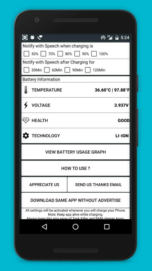 Pil Alarmı - Reklamsız - Pilinizin çalışma durumunu ve şarjını takip edin. Bu uygulama sayesinde sadece pilinizin durumunu değil, aynı zamanda şarj süresini ve daha fazlasını öğrenebilirsiniz. Belirli bir pil şarj seviyesinde sizi bilgilendirecek bildirimleri manuel olarak ayarlayabilirsiniz. Ayrıca, bu uygulama pilinizin sıcaklığını da gösterecektir, bu da oldukça önemli çünkü sık sık aşırı ısınma pilinize zarar verebilir.