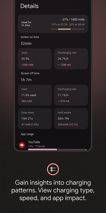 Batarya Guru: Batarya Sağlığı - Telefonunuzdaki bataryanın tam analizini yaparak, belirli uygulamaları kullanırken ne kadar batarya tüketildiğini, nedenini ve diğer detayları öğrenin. Bataryayı kalibre edin ve şarj kontrolörünün uçlarını ayarlayın. Ayrıca cihazın sıcaklık durumunu sürekli izleyin, çünkü yüksek veya düşük sıcaklık nedeniyle akıllı telefon hızlı bir şekilde deşarj olur ve kapanır. Bataryanın ömrünü uzatın, ne zaman şarjınızın biteceğini zamanında öğrenin ve enerji almak için şarja takın.