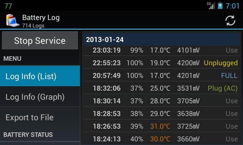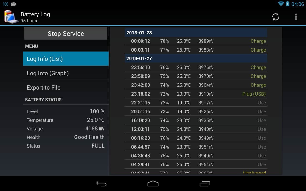 Pil Günlüğü - Pilinizin durumunu tek bir uygulama ile takip edin. Bu uygulama yalnızca şarj seviyesini değil, aynı zamanda birçok başka bilgiyi de gösterecek ve gerekirse pilin yaklaşık ömrünü hesaplayabilecektir. Pilinizin nasıl çalıştığı hakkında her zaman bilgi sahibi olun. Ayrıca bu uygulama kolayca yönetilebilir, sezgisel ve basit arayüzü zengin işlevselliğe mükemmel bir ek olacaktır.