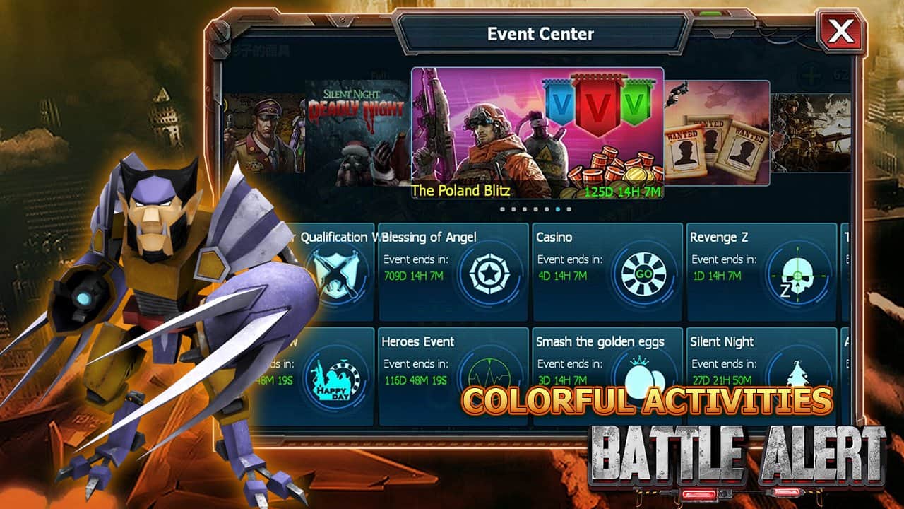 Savaş Alarmı - Kırmızı İsyan, strateji geliştirmeyi ve general yeteneklerini gerektiren bir askeri harekâttır! Her an düşmanı parçalamaya hazır, savaşa elverişli bir orduya komuta edebileceksiniz! Kaynakları toplamanız, düşmanlarla savaşmanız gerekiyor ve ayrıca gerçek oyuncularla çevrimiçi olarak da savaşabilirsiniz. Düşmanı yenin, piyadelerinizi, tank ordunuzu, savunma kulelerinizi ve diğer stratejik nesnelerinizi geliştirin!