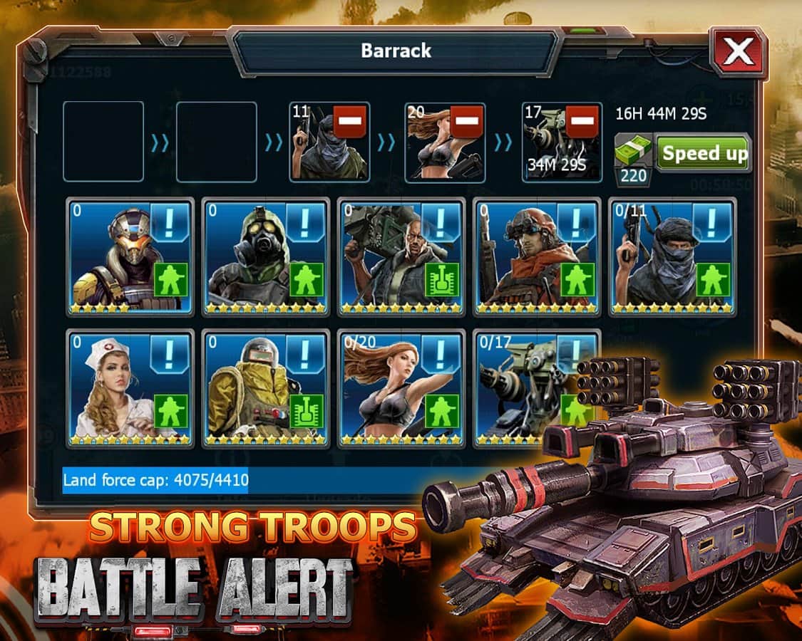 Savaş Alarmı: Tanklar Savaşı – farklı devletler arasında küresel bir savaşta yer alacağınız devasa ve heyecan verici bir dünyayı keşfedin. Android için strateji, sizi uzak geçmişe götürecek, burada en değerli şeyin kaynaklarıyla birlikte toprak olduğunu göreceksiniz. Askeri bir üs inşa edin ve yeni keşfedilmemiş topraklar için düşmanlarla savaşın; bu sayede daha fazla kaynak elde edebilir ve çeşitli araçlar üretebilirsiniz. Devasa bir savaşçı ordusu toplayın ve yeni toprakları fethederek üslerinizi ve mülklerinizi genişletin. Bilimsel araştırmalar yapın ve uçaklar, tanklar ve topçu ekipmanları üretin. Rakiplerin üslerine saldırın ve değerli ganimetlerle geri dönün.