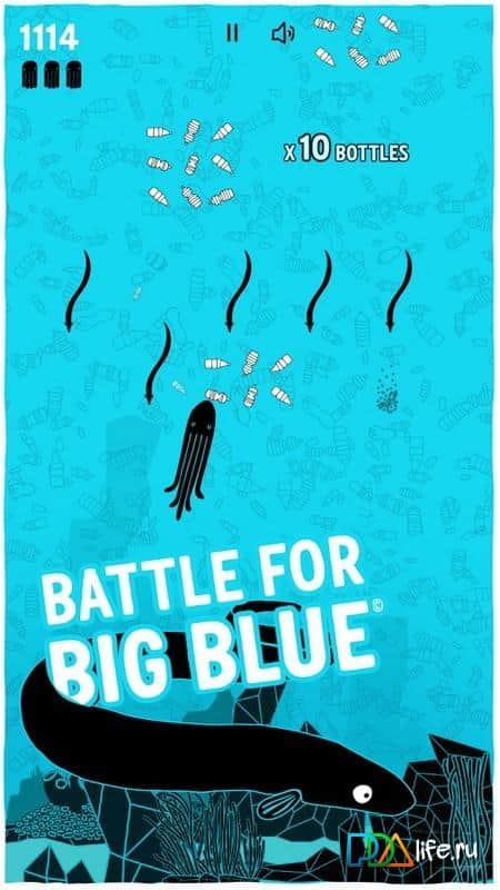 Büyük Mavi için Savaş – gezegenimizdeki okyanusların ne kadar kirli olduğunu herkese gösteren eğlenceli bir Android oyunu. Bu oyunda, beş okyanusun derinliklerinde dolaşan ve plastik şişeleri toplayan bir ahtapotu yönetmeniz gerekiyor. Ahtapotunuzu kontrol altına alın ve okyanusları kirleticilerden temizleyerek mümkün olduğunca fazla şişe toplayın. Yolunuzda çeşitli balıklar olacak, bunlarla çarpışmaktan kaçınmak için mükemmel reflekslerinizi kullanmanız gerekecek. Atlantik Okyanusu'ndan başlayıp Pasifik Okyanusu'na kadar çeşitli seviyelerde seyahat edin. Facebook sosyal medya platformunda arkadaşlarınızla yarışın ve onlara meydan okuyun.