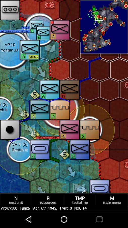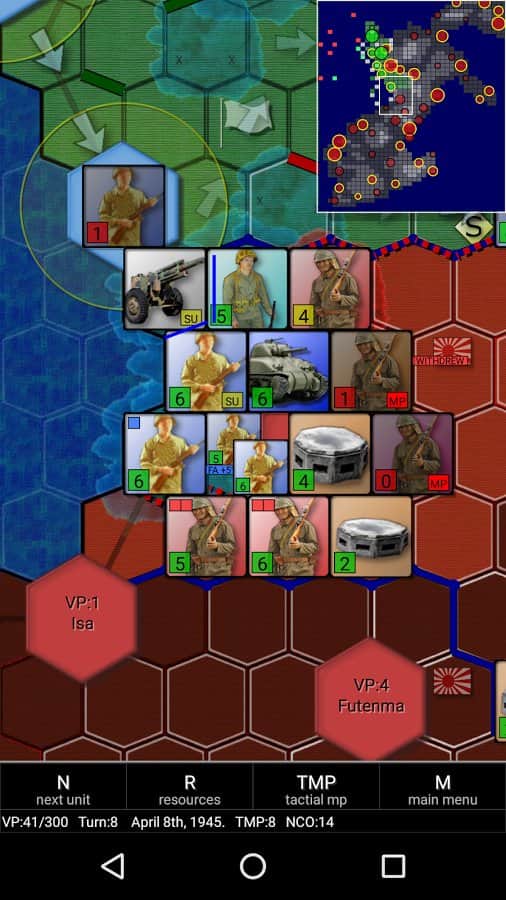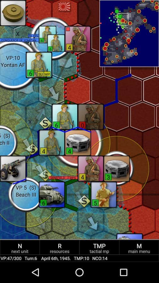 Okinawa Savaşı 1945'in Android için başlıca avantajları tarihsel doğruluk ve gerçekçi modda oynama olanağıdır; bu modda oynayarak değerli bir rakiple karşılaşacaksınız. Bu modda oyunu sadece saldırganlık ve kaba güçle geçmek neredeyse imkansızdır, bu yüzden tüm stratejik potansiyelinizi devreye sokun ve her adımı iyi düşünün, o zaman zafer sizin olacaktır.