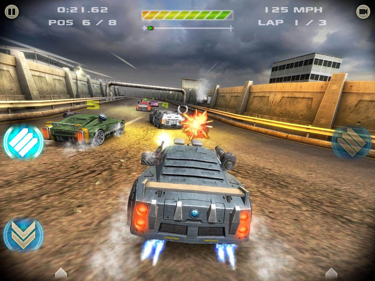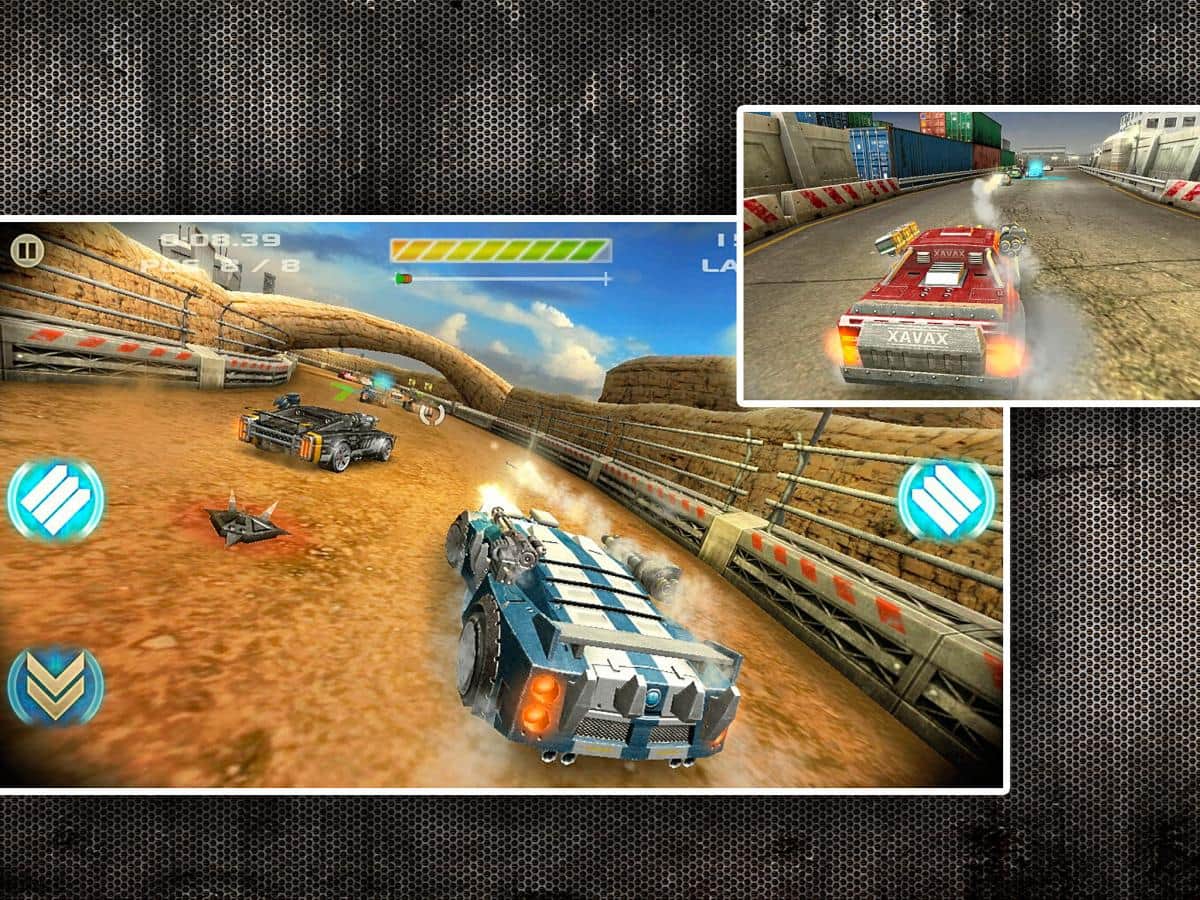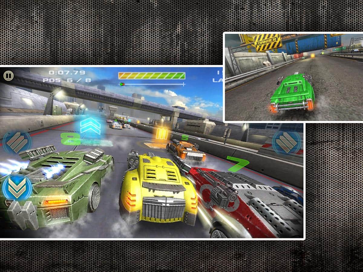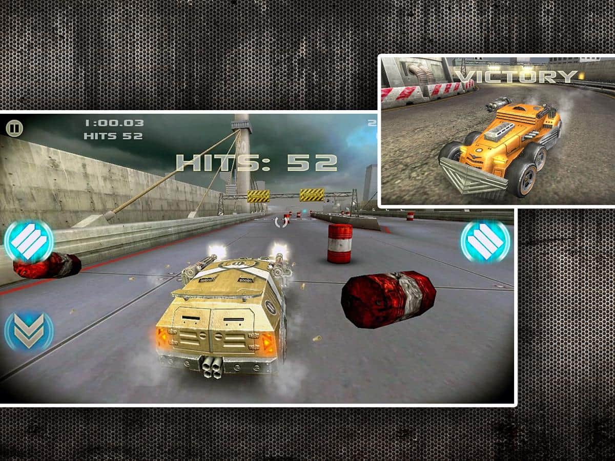 Savaş Araçları - hız ve tehlikenin belirleyici unsurlar olduğu hızlı savaş yarışları. Öyleyse, 7 araçtan birini seçin ve direksiyona geçin. Aracınız, hem önünüzdeki hem de arkanızdaki rakipler için savaş silahlarıyla donatılmış - bu, yarıştaki tüm katılımcılarla başa çıkmayı kolaylaştırır! Dinamik oyun deneyimi, ivmeölçer ile kontrol sunar, gaz otomatik, ancak ateş etme ve frenleme tamamen size bağlı. Yol boyunca, 'tamirler' - mühimmat, hız artırıcılar ve kredi ile karşılaşacaksınız. Kazanın ve yeni araçlar, pistler ve silahlar açın! Farklı yarış modlarında kendinizi geliştirin - düello ve hayatta kalmadan, saf yarış ve zaman yarışı yapmaya kadar!