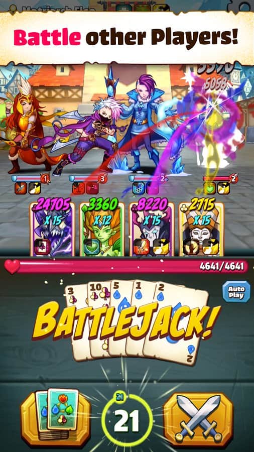 Battlejack: Blackjack RPG – Android için heyecan verici bir oyun, burada benzersiz bir blackjack tabanlı savaş sistemi ile riskli savaşlara katılacaksınız. Bu oyunda Midgard'a taşınacaksınız ve göreviniz eşsiz bir kahraman ordusu toplayarak düşmanla savaşmak olacak. Trolllerden korsanlara, tek boynuzlulardan kediciklere kadar inanılmaz yaratıkları bir araya getirin. Ana hedefiniz 21 puan toplamak ve böylece savaşçılarınızı düşmanı yenmek için yardımcı olacak ek güçlerle donatmaktır. Kahramanlarınızı geliştirin ve ihtiyaç duyduğunuz ekipman ve silahları elde edin. Oyunun efsanevi dünyasını keşfedin ve Midgard dünyasında denge ve huzur getirin.