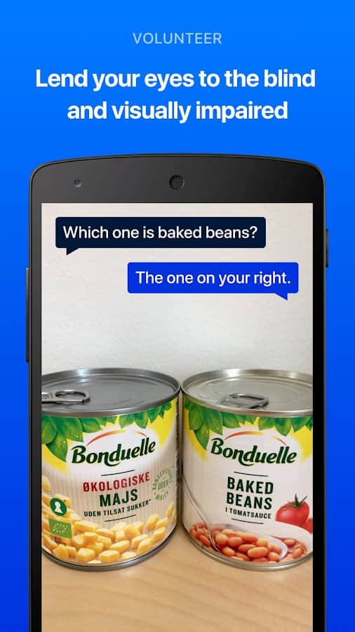 Bu uygulama sayesinde iyi gören insanlar, çevrimiçi video görüşmesi aracılığıyla görme engelli veya az gören kişilere kolayca yardımcı olabilir. Görme engelli veya az gören kişiler, yardım isteyebilir ve iyi gören diğer insanlardan destek alabilir, tek yapmaları gereken bu uygulama aracılığıyla bir talep göndermektir. Gönüllü bildirimi kabul ettiğinde, konuşmacılar arasında sesli ve görüntülü bir bağlantı kurulur. Gören yardımcı, telefonunun kamerasını kullanarak görme engelli veya az gören kişinin gözleri olarak video bağlantısı aracılığıyla yardım edebilir.