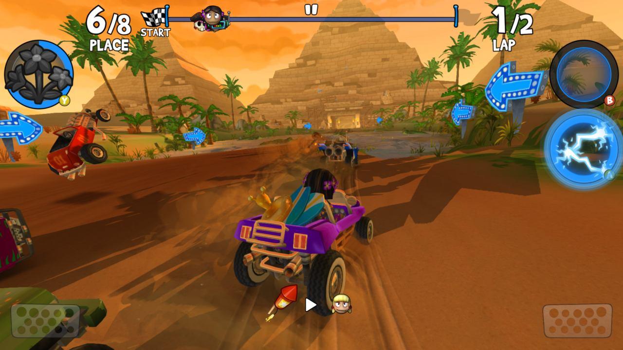 Beach Buggy Racing 2: Auto - etkileyici grafikleri, gerçekçi fiziği, harika araçları ve inanılmaz yetenekleri ile off-road yarışlar sunan bir oyun. Antik piramitlerden, ejderhalı kalelere, korsan derinliklerine ve uzaylı laboratuvarlarına kadar en sıra dışı parkurlarda çılgın yarışlara katılın. Yeni pilotlar açın, araçlarınızı geliştirerek yarış liginde zirveye ulaşmaya çalışın! Özel yeteneklere ve güçlendirmelere sahip eşsiz yarışçıları işe almak için otorite kazanın. Ekibinizi geliştirin, mükemmel kombinasyonlar oluşturun ve yarışlarda üstünlük sağlayın!